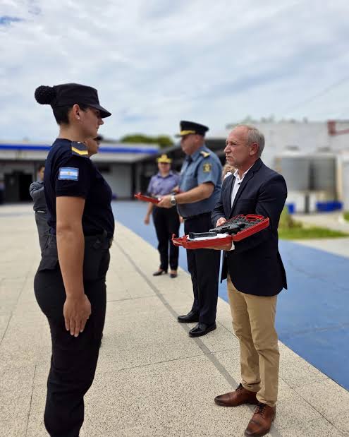 Durante la ceremonia, se realizó la entrega del arma reglamentaria y la credencial policial, formalizando el inicio de funciones operativas del nuevo personal.