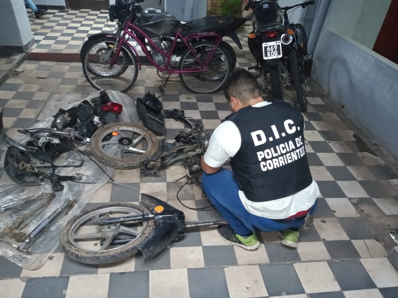 En horas de la tarde de ayer 23-04-21, efectivos policiales de la Dirección de Investigación Criminal D.I.C. en el marco de tareas investigativas en relación a la sustracción de una motocicleta, finalmente lograron recuperar dichos rodado, la cual se encontraba totalmente desarmada.