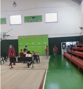 En las primeras horas de hoy Efectivos Policiales de diversas áreas se encuentran realizando múltiples tareas de seguridad y prevención, en el marco hacer cumplir las medidas sanitarias ordenadas por el Poder Ejecutivo Provincial en los diversos puntos de vacunación dispuestos para los adultos mayores de 65 años.