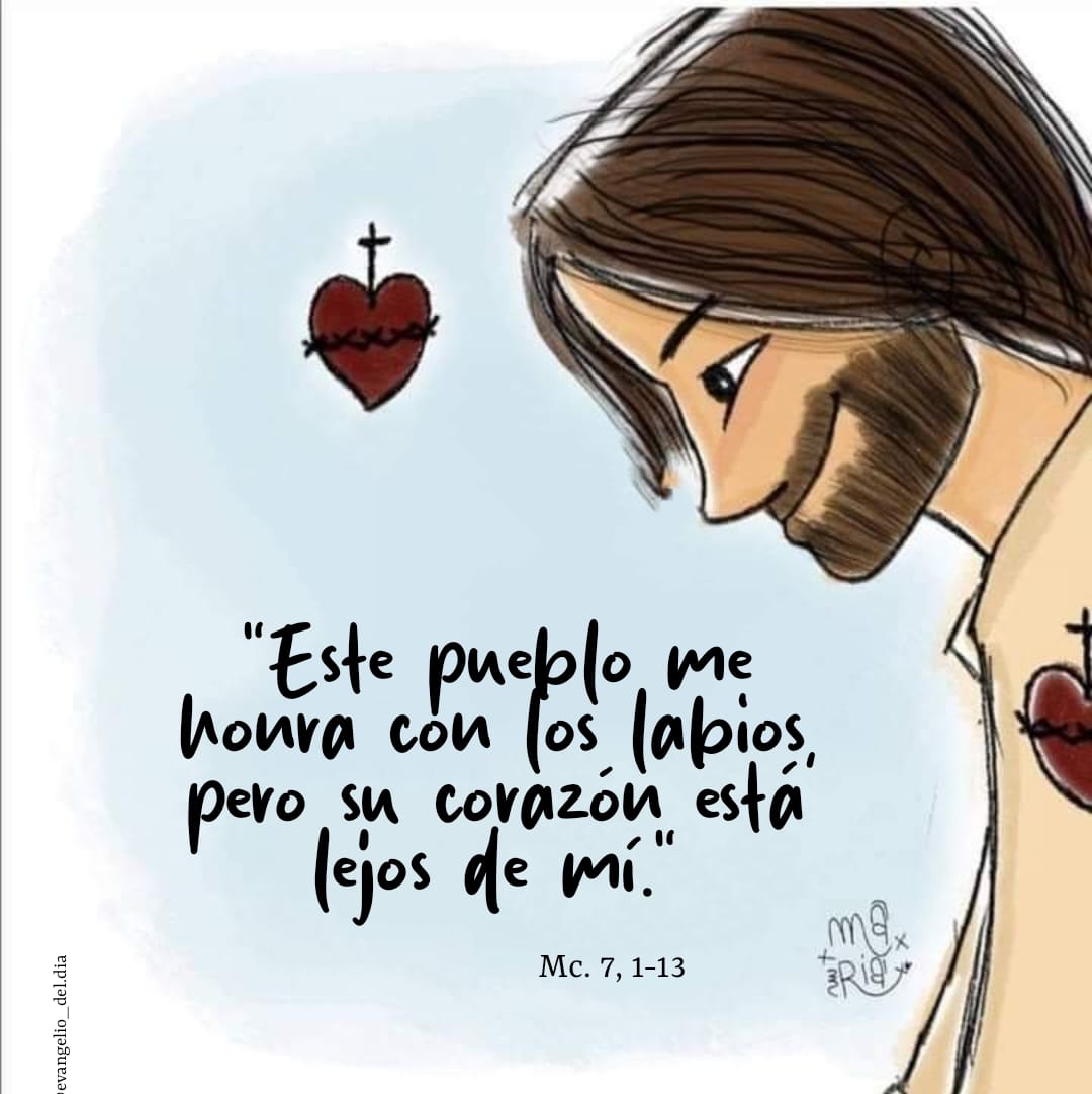 «Bien profetizó Isaías de vosotros, hipócritas, como está escrito: «Este pueblo me honra con los labios, pero su corazón está lejos de mí. El culto que me dan está vacío, porque la doctrina que enseñan son preceptos humanos». Dejáis a un lado el mandamiento de Dios para aferraros a la tradición de los hombres».