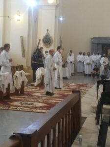 Dado que estos hombres, que están aquí delante de nosotros, serán ordenados para el servicio del Pueblo de Dios en las cosas, como decíamos, que pertenecen a Dios. Para ello, tendrán que ir aprendiendo su oficio mirándose continuamente en el espejo de Jesús. Él es el único eterno Sacerdote, mediador entre Dios y los hombres. Por él, con él y en él, como decimos al final de la Plegaria eucarística, no solo aprenderán el oficio del buen pastor, sino que deberán conformar su propia vida con la de él, que no vino a ser servido sino a servir y a dar su vida en rescate de muchos (cf. Mc 10,45). Tal como lo acabamos de oír en el Evangelio, Jesús “se levantó de la mesa, se sacó el manto y tomando una toalla se la ató a la cintura. Luego echó agua en un recipiente y empezó a lavar los pies a los discípulos y a secárselos con la toalla que tenía en la cintura” (Jn 13,4-5).