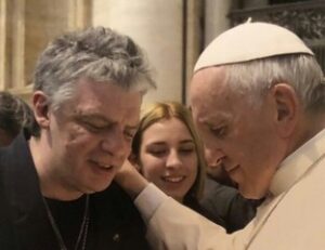 El Papa Francisco imponiendo las manos al ex líder de la banda Ratones Paranoicos