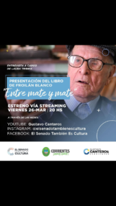 El viernes 26 de marzo a las 20 horas, el escritor Froilán Blanco de 99 años, presentará su sexto libro titulado “Entre mate y mate” donde compila anécdotas y vivencias. La obra es publicada por la Editorial Amerindia Ediciones Correntinas.