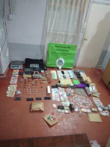 Y en el cuarto allanamiento, secuestraron 54 envoltorios conteniendo sustancia en polvo de color blanco que al test arrojo resultado positivo para cocaina, y con un peso total de 09 gramos, dinero en efectivo y teléfonos celulares varios, aprehendiendo a una mujer de 38 años y a la demora de un hombre de 48 años de edad.