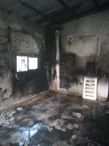 La Sra Maria Luisa ofuscada y preocupada por tremenda situacion nos compartia que el siniestro se inicio en la heladera que estaba situada en la cocina y cuyo desperfecto en el foquito provoco una llamarada que no pudieron frenar haciendo que el mismo se propagara x el techo provocando el incendio casi total de su casa.